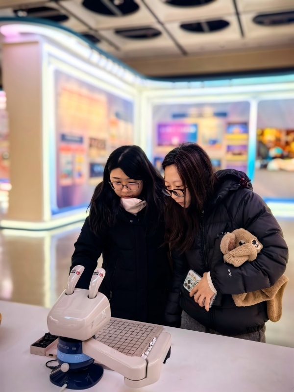 参观过程中,大家还饶有兴致地来到馆内的互动体验区,体验人机交互棋类项目。棋盘前,几人一组轮番上阵,或凝神思考,或会心一笑,在传统棋艺与现代科技的融合中放松身心。现场欢声笑语不断,既增进了同事间的交流,也为参观活动增添了几分灵动与趣味。
