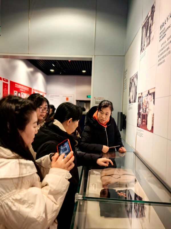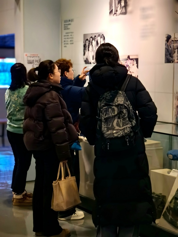 行至国际友谊馆时,讲解员向大家介绍,展厅中陈列着两件由红都集团为中国第一位女大使丁雪松手工制作、并伴随她赴国外递交国书的服饰。当大家的目光落在展柜中这两件珍贵的展品上时,倍感亲切与振奋,纷纷移步至展柜前驻足凝视,端详着这两件凝结着红都匠心、见证新中国外交历程的珍贵展品。挺括的版型、细腻的针脚、沉稳的色彩,无不彰显着红都裁缝的精湛技艺。大家一边观看,一边低声交流着各自了解的背景故事,言语间满是身为红都人的自豪与荣光。不少女职工掏出手机拍照记录,表示要将这份属于集体的荣耀带回去,与同事们分享。展柜前久久不散的人群,成为当天参观活动中一道温暖的风景。